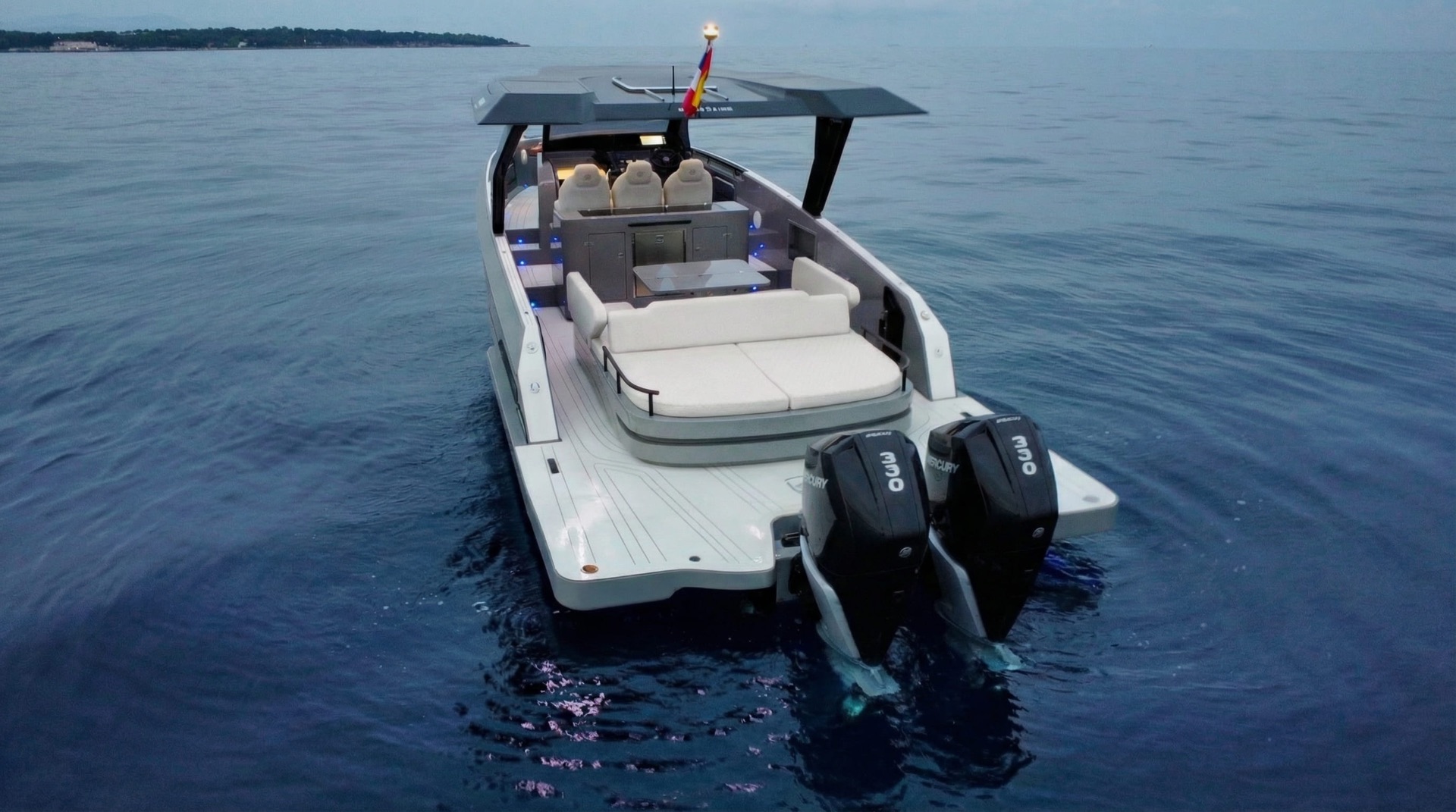 La embarcación insignia de nuestra flota. 11 metros de puro lujo mediterráneo con dos cabinas completas, solarium XL y acabados premium. Para quienes no se conforman con lo estándar.