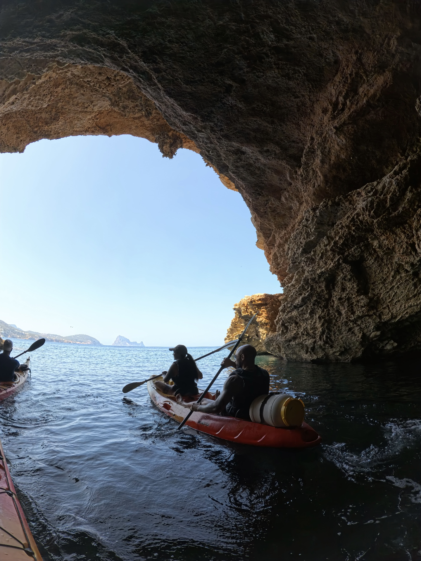 Una de estas cuevas solo es accesible desde el agua y la otra es mucho más fácil de alcanzar en kayak. Remando llegas donde casi nadie llega. Por eso el 99% de los visitantes de Ibiza nunca las verá.